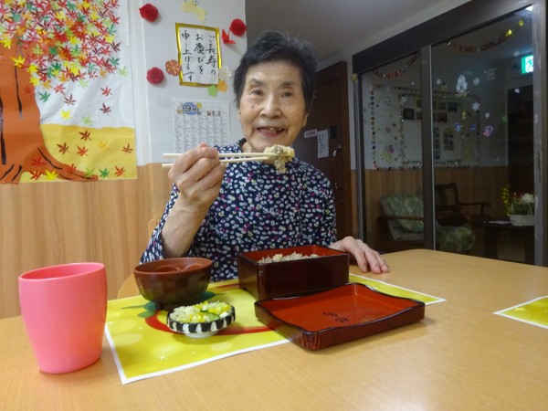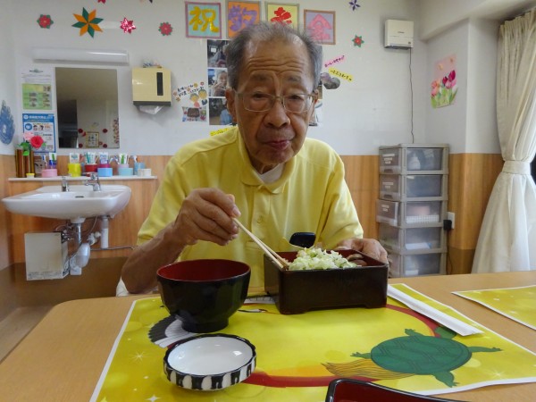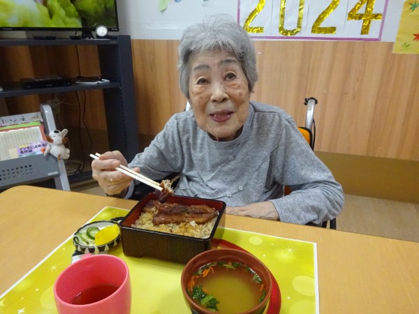 グループホーム田端では“敬老の日”は全フロア一緒にうな重でお祝いすることが恒例となっております。