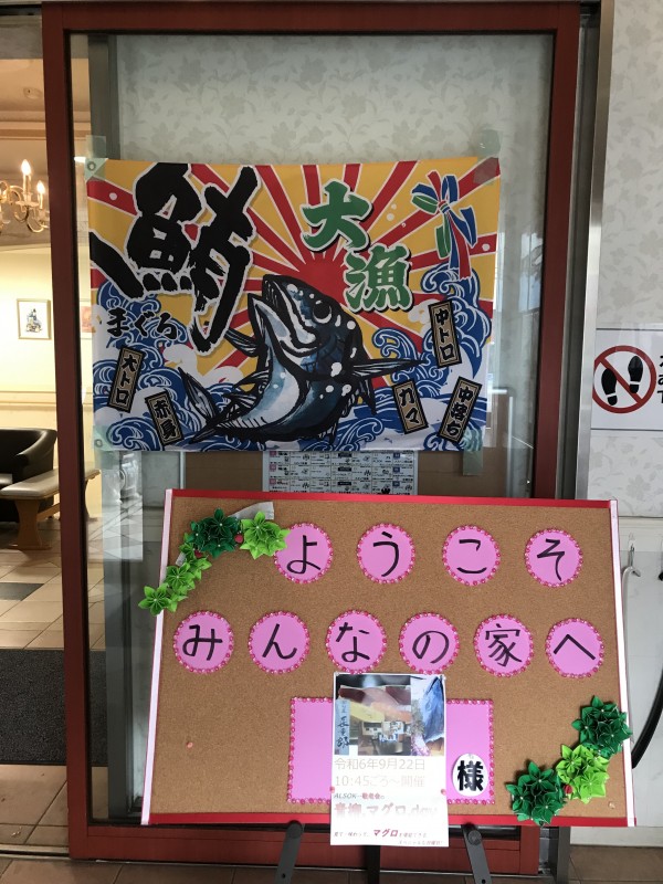 さて、先日は敬老会レク、マグロの解体ショーがありました!