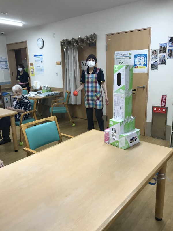 スタッフさんは、皆さんに楽しいことをしてもらいたいと思い、リサイクルでこんなタワーを作りました。