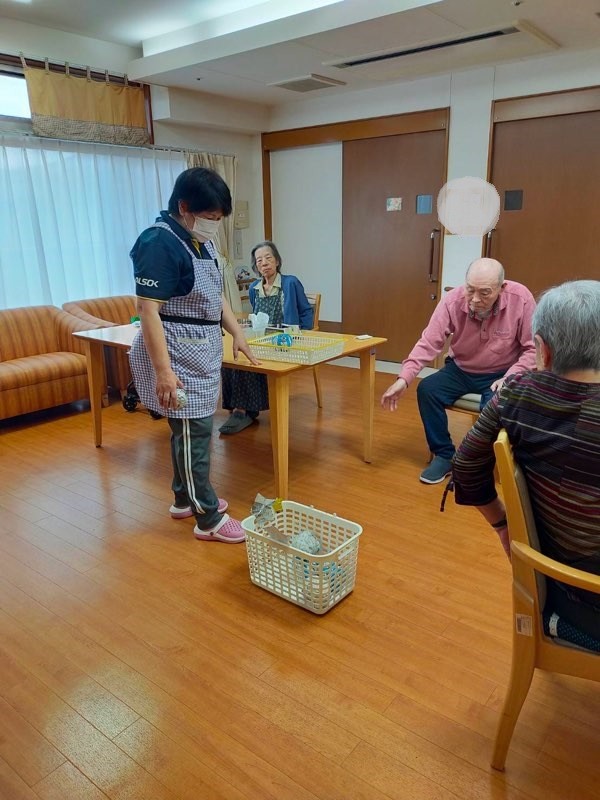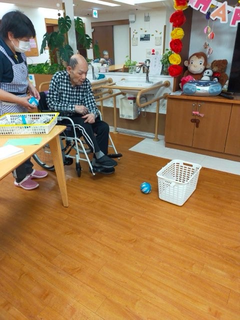 その後はKが考えた歌いながら体を動かすゲームと1分間に何個ボールをカゴに入れられるか、をやっていただきました。