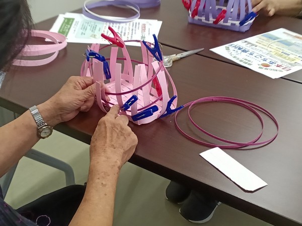 金曜日に総合センター4階でクラフトテープ制作を行い、1階ではALSOK介護の「健幸いきいき教室」が行われました。