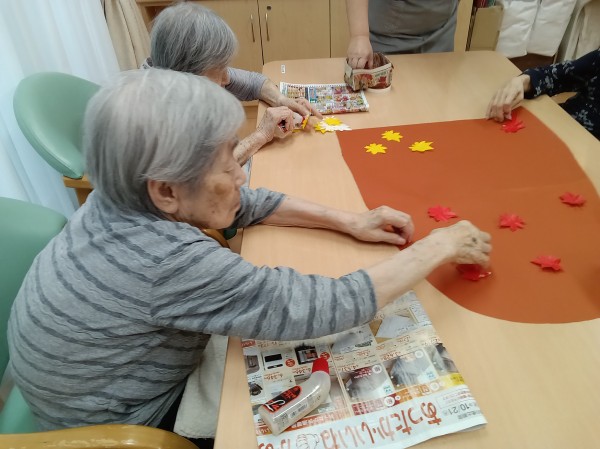 紅葉の葉を一つ一つ丁寧に貼付いただきました。
