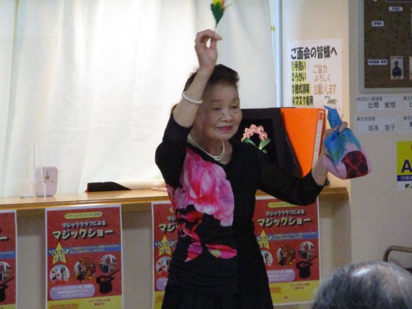 ステッキが紐に成ったり、大きなハンカチに成ったり、ハトが出てきたりとスピード感溢れるマジックでした!