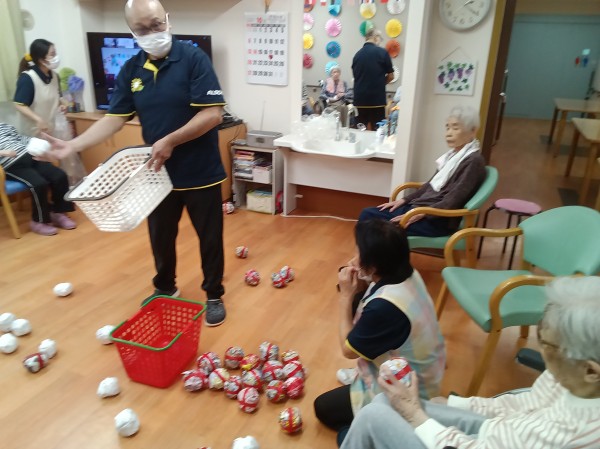 風船バレー(何回続くか)、玉入れ、旗揚げ、