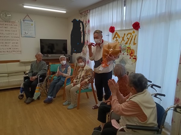 稲城市では初の金メダリストの訪問にご利用者様、職員もウキウキです。
