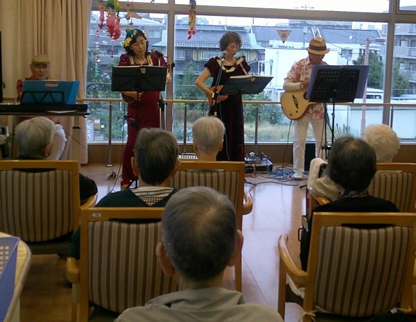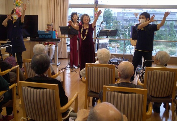 入居者の皆様は、手拍子をしたり、一緒に踊ったりと、とても楽しまれておりました。
