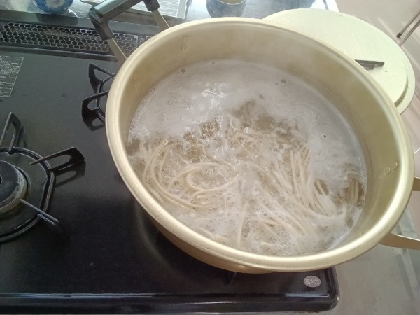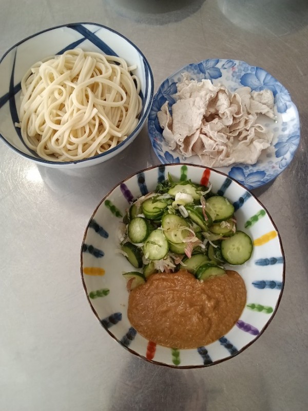 ゴマをすってみそベースのつけ汁に混ぜて食べます。