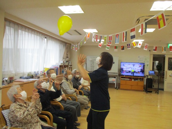 今日はZOOM運動会!風船バレーや紅白玉投げ等紅白に分かれ競争しました!みんなの笑顔が素敵!みんな頑張れ(^O^)/