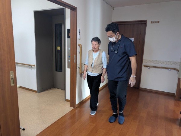 足上げや歩行訓練をADL向上の為、訪問看護師と行っています。