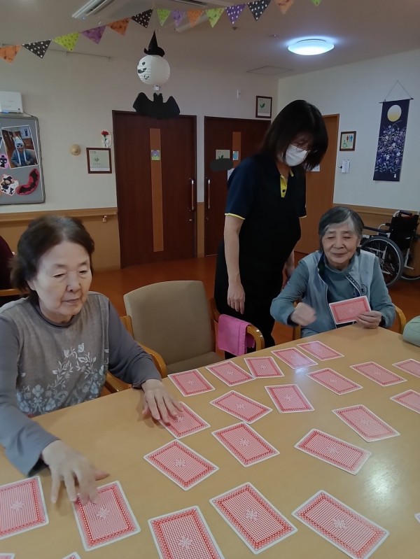 レクの様子です!みんなでトランプ、どれにしようか考え中☺