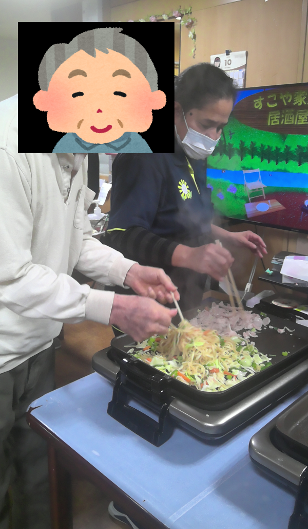 焼うどんの他に、バーベキュー風なものを調理しています。
