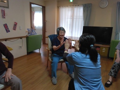 指導員がホームに来て、1階、2階それぞれ約30分ずつ体操をおこないました。