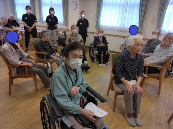 最後はジェンガに合わせて座ったままフォークダンスです!