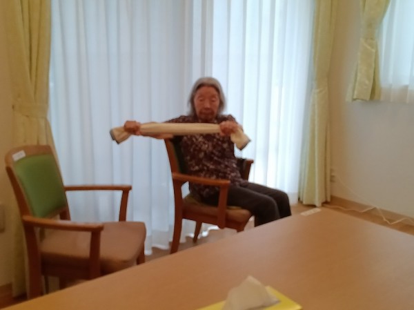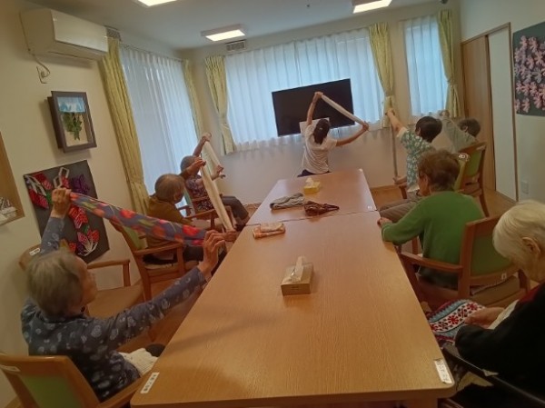サクラ先生が来てくれたよ!タオル体操【グループホームみんなの家・横浜綱島】