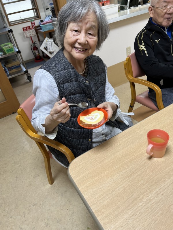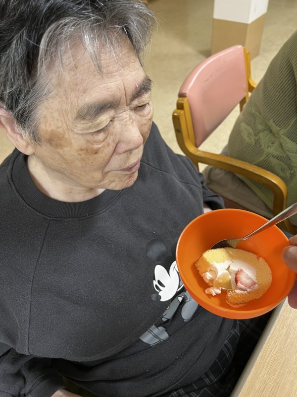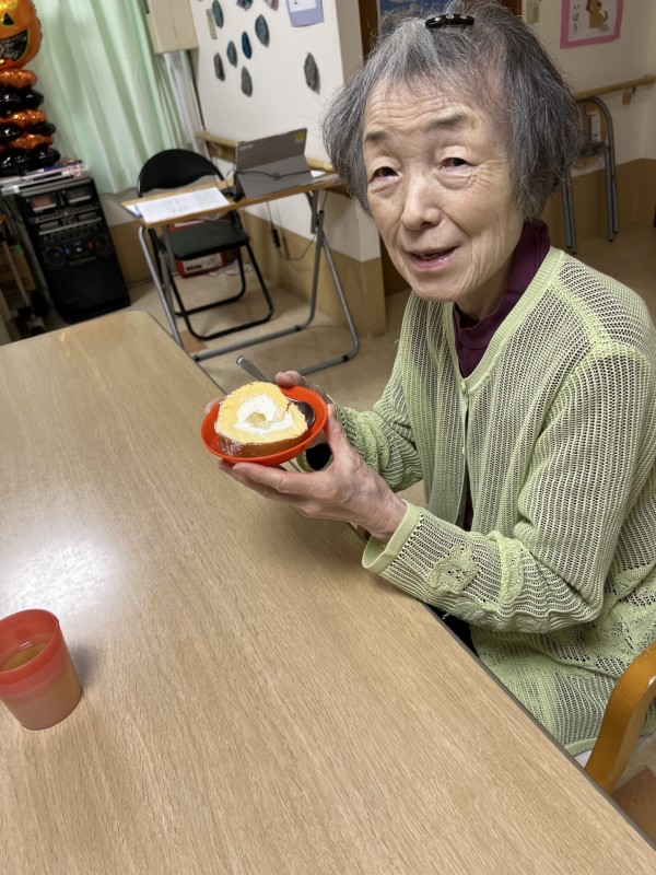 今回は1階で10月お誕生日会がありましたので、ロールケーキを2階の皆さんにも召し上がっていただきました。