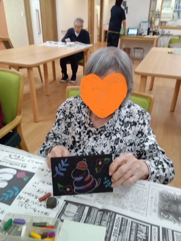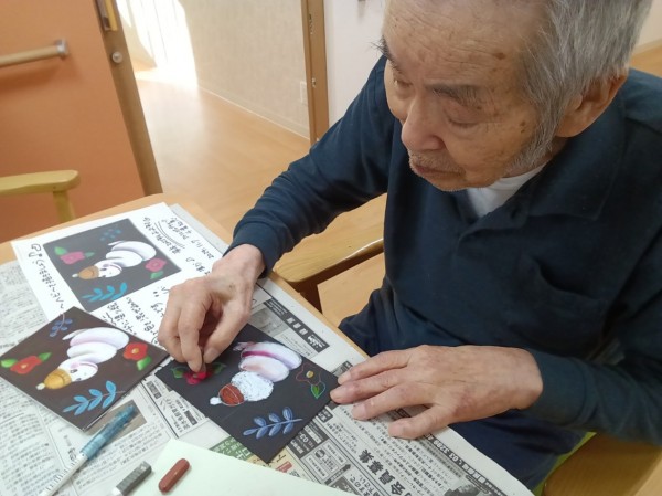 3月に体験した「チョークアート」。今月も講師の方に来て頂き参加して頂きました。
