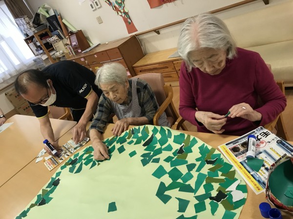 来月はクリスマスということで、皆様でクリスマスツリーの貼り絵を製作しました♪