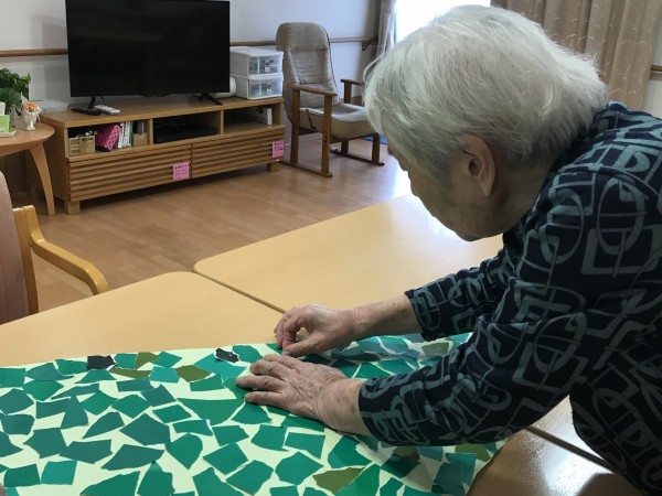 折り紙をちぎるところからスタートです♪スタッフも実践したことがありますが、意外と肩が凝る作業だったのを覚えています。