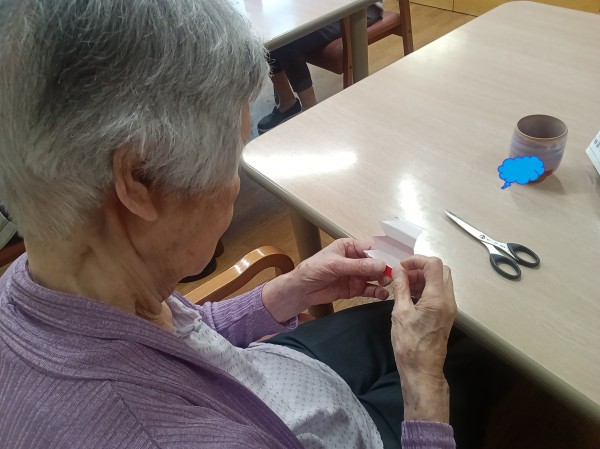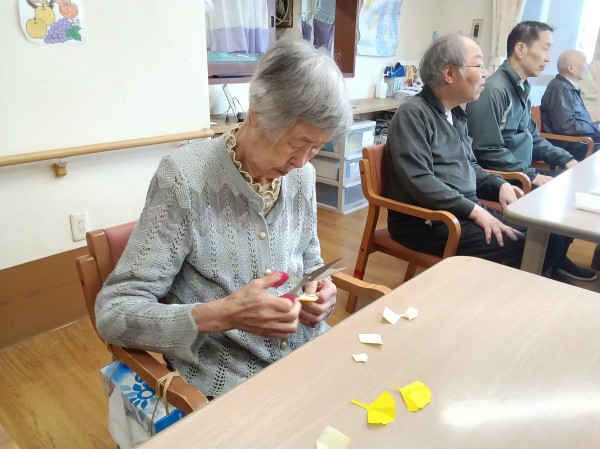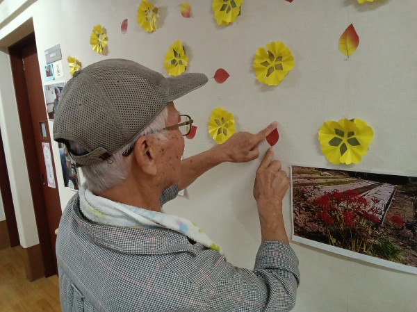 ご利用者様にお手伝いいただき、紅葉の制作をしました。