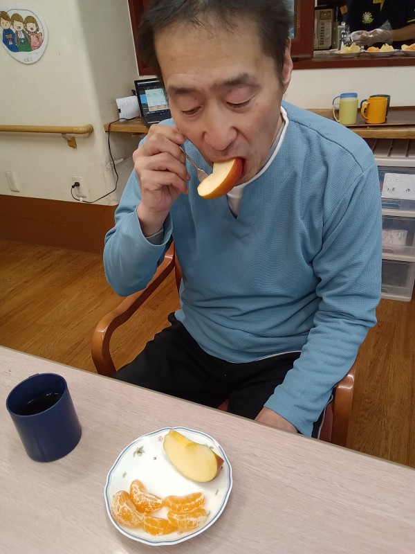 ご利用者様のご家族様より、りんごとみかんをいただいたので