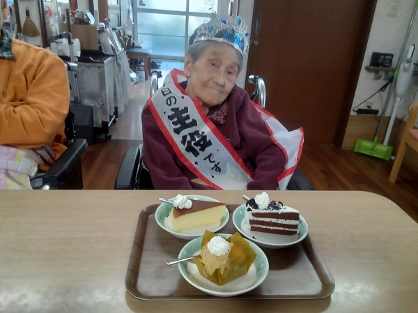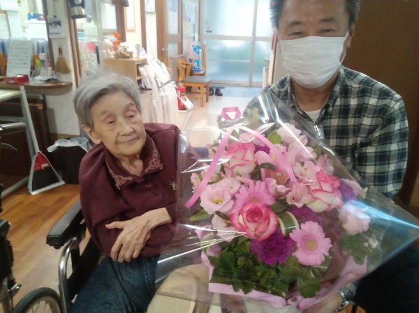 当日は次男様もお見えになりました。お花をもらったり、ホーム長さんからケーキをいただき満足の一日を過ごしました。