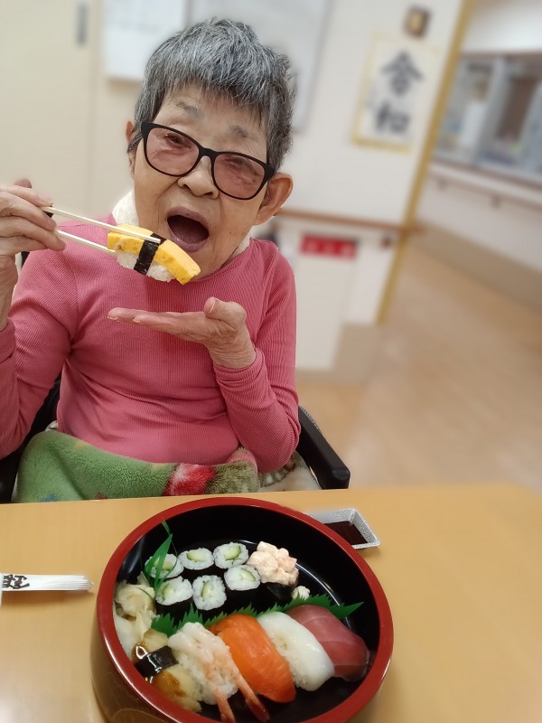 施設では、あまり食べれない特別に薩摩・握り寿司が提供されました。