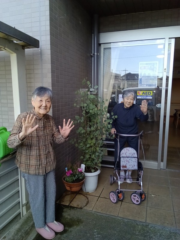 ご利用者様と一緒に花壇の様子を見に行きました^^