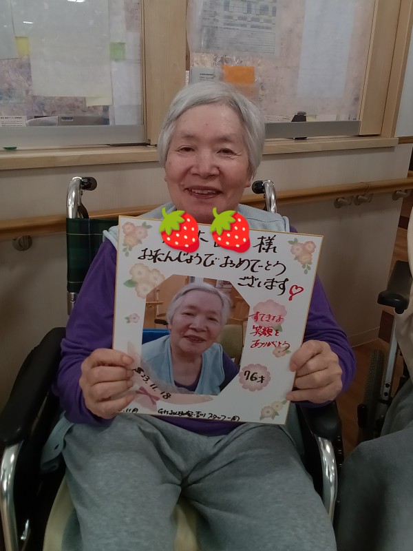 今月お誕生日を迎えられたご利用者様です????おめでとうございます。いつも素敵な笑顔をありがとうございます????