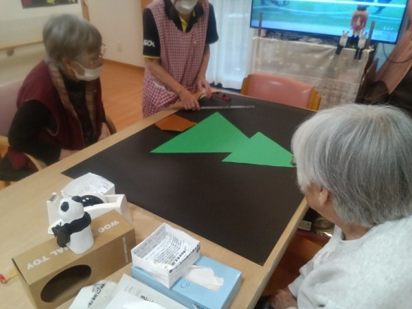 ツリー(壁画)の飾りつけ。