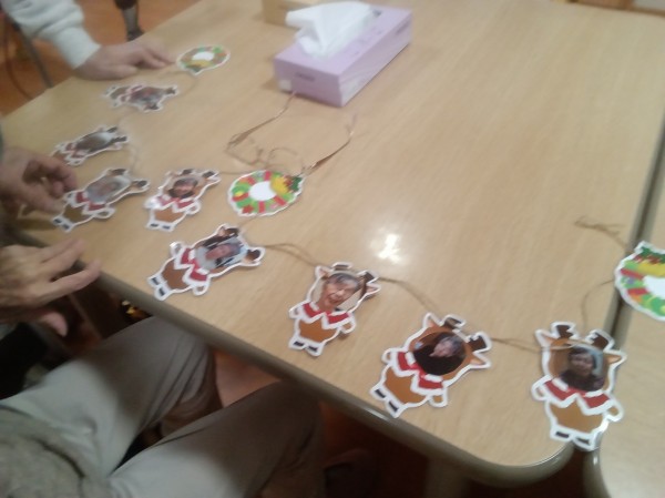 皆様のお顔の、トナカイの飾りが完成です。