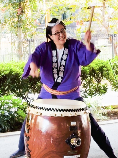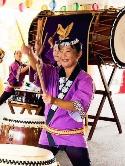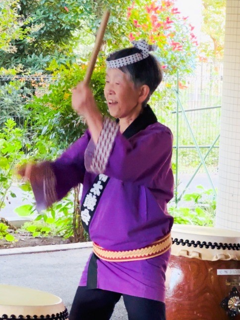 素敵な笑顔で太鼓を叩かれていました!でもすごい迫力!演奏後、太鼓の叩き方を教わりました!