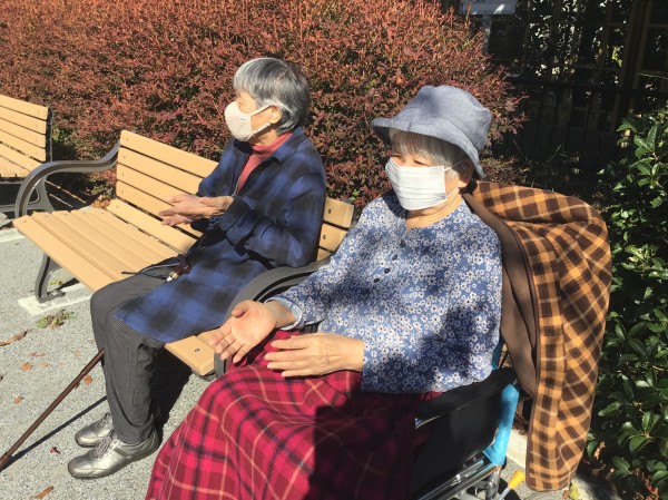 冬の寒さが身に染みる季節になってきましたが、お天気がいい時は近くの公園にお散歩に行ったり、デイの近くの日当たりが良いところへ日向ぼっこに行く事がよくあります。