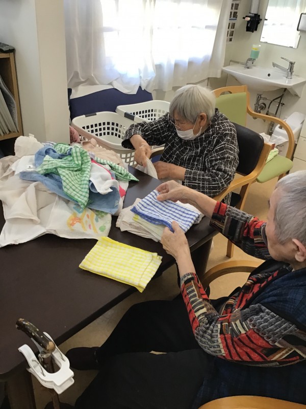 中田南では日常生活のお手伝いも利用者様におねがいしているんですが、洗濯物たたみもあっという間です☆