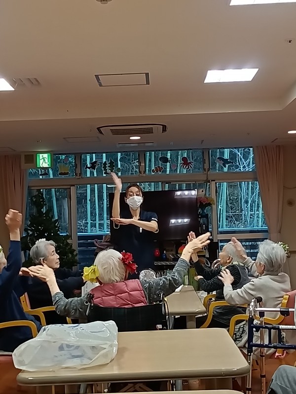 本日はクリスマス会に向けてフラダンスの練習をしております。