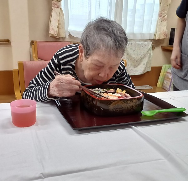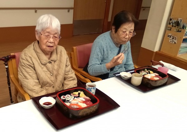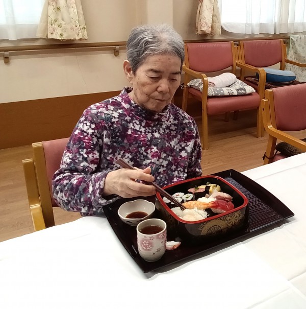 1階フロアはお寿司とチョコレートケーキでお祝い♪