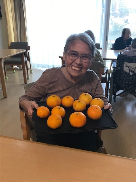 本日は先週2階入居者様(S様)の面会時、ご家族様のお家で採れたミカンを沢山いただきました(*^^*)
