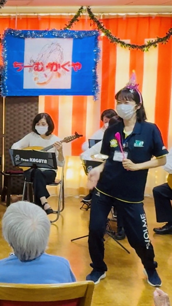帰りの車の中ではご利用者様同士「やっぱり音楽はいいわね」と「ちーむ・かぐや」さんのお話で持ち切りでした!また、ボランティア(無料)で来ていただいている事にも驚かれていました。