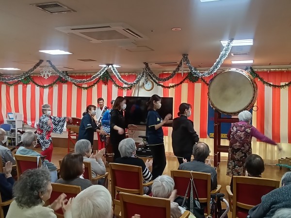 ご利用者様と職員と「彩友会」の方と一緒に太鼓の音に合わせて「東京音頭」を踊りました( *´艸`)♪