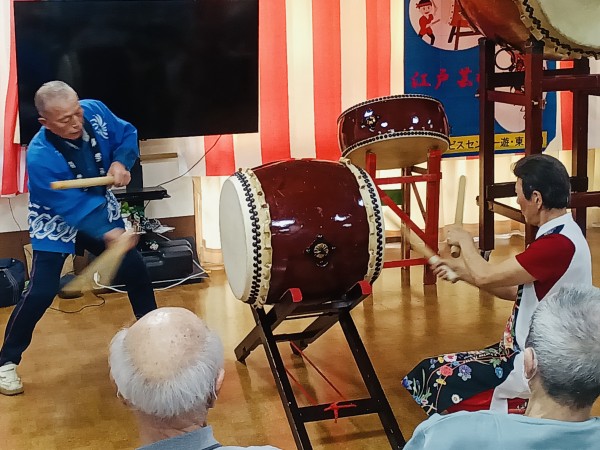 遊・東浦和には「和太鼓」さんと江戸芸かっぽれの「彩友会」さんが来所して下さり、ド迫力のパフォーマンスを見せて下さいました!!