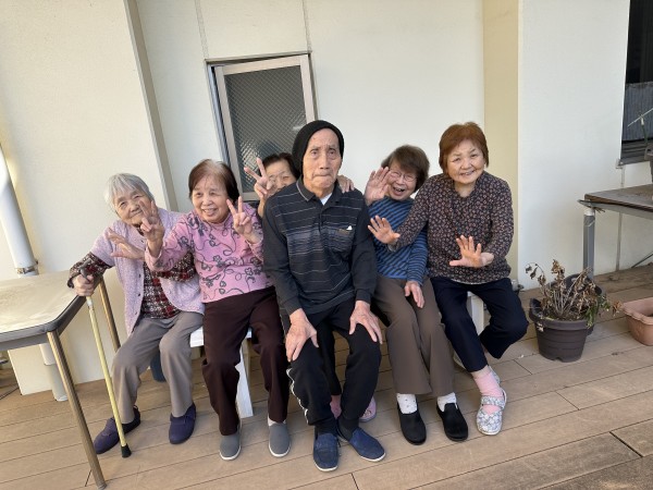 雲ひとつない青空が広がるなか、ベランダを皆さんで散歩中です!