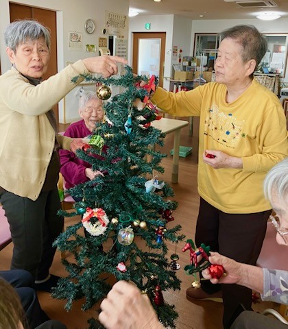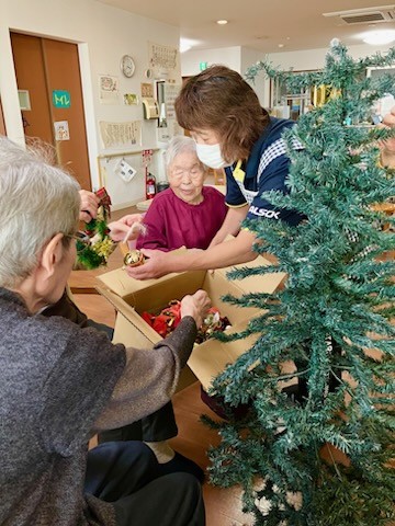 皆さんで、2Fフロアの クリスマスツリー飾り付け をしました!(^^)!