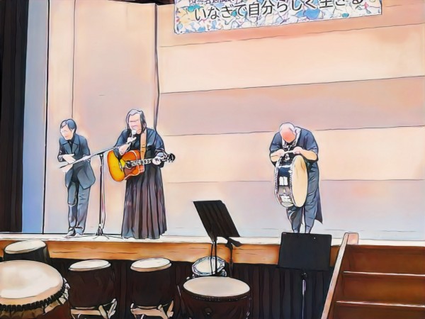 稲城市役所のホールで、障害者支援団体が主催する和太鼓の演奏会が行われるのだ。