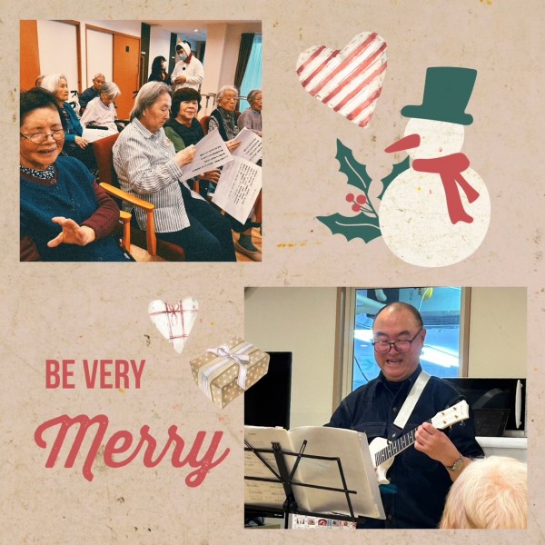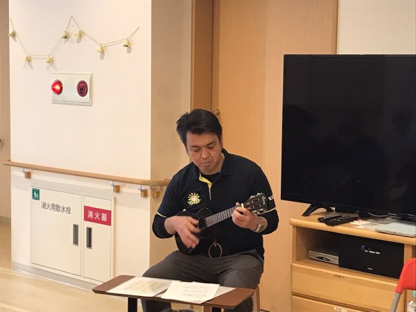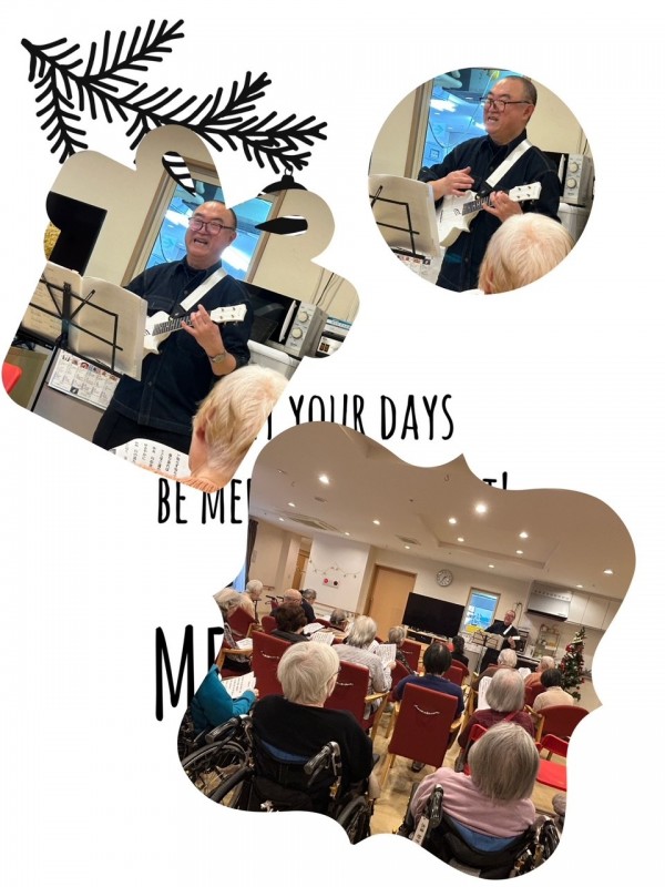 今年のクリスマス会はホーシニア治療院様にご協力をいただきウクレレの演奏会が開かれました。