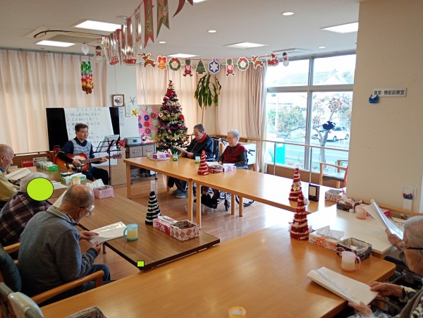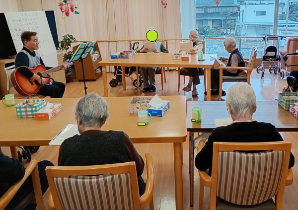 職員のギター演奏に合わせて、各階でクリスマスソングを歌いました♪