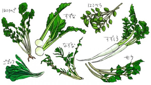 例えばせりは「競り勝つ(せりかつ)、なずなは「なでて汚れをはらう」