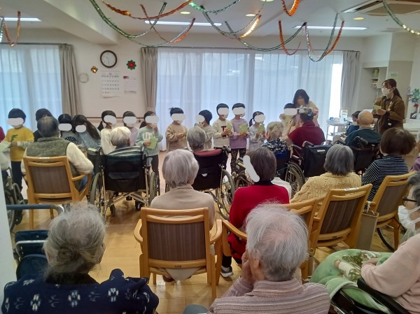 利用者様と園児たちと手をつないだり、プレゼント交換したり、