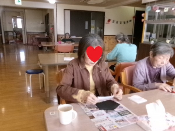 何だか、真剣な眼差しですね。(笑)画用紙はキレイに貼れました。