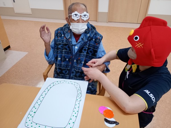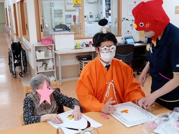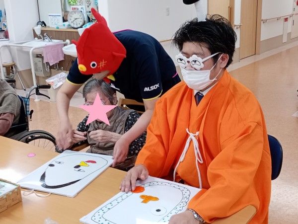 依田ホーム長と雁部ケアマネジャーも福笑いに参加!!