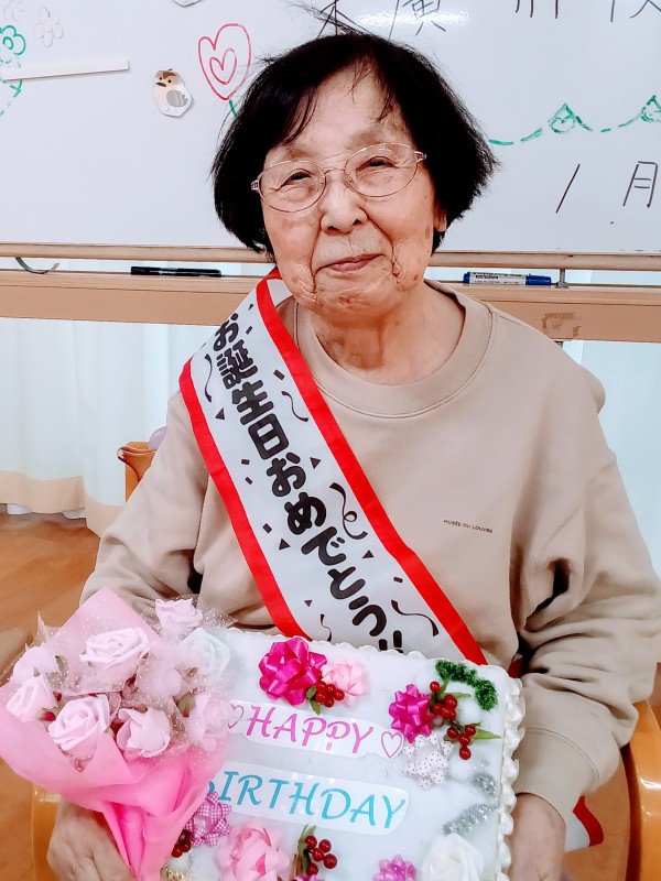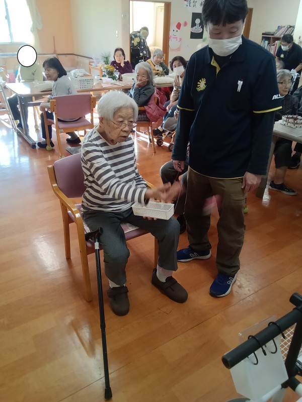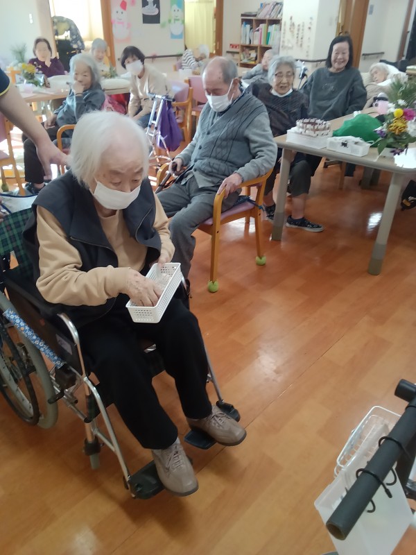 この後、今月誕生日の方を皆で、お祝いしています。お誕生日おめでとうございます。