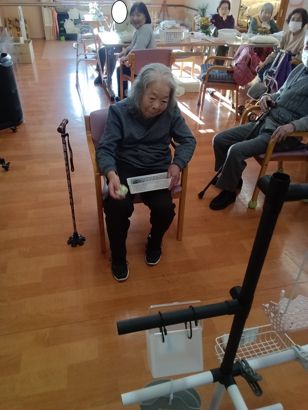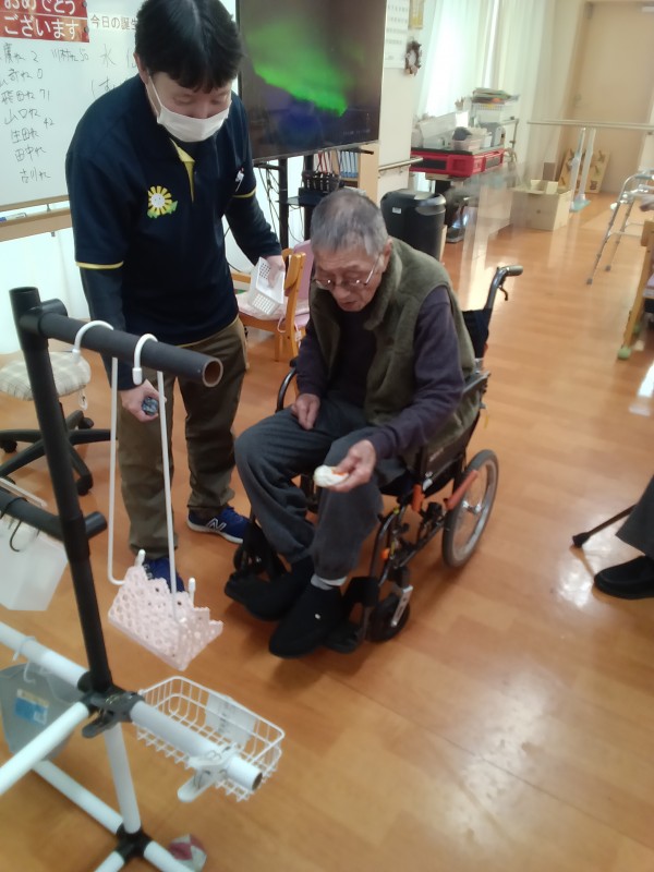 今日は、「おけだま」をしています。実際に販売している物を見て、参考にして作りました。